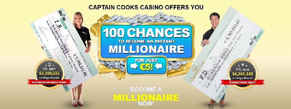 Ein jeder Neukunde, der sich im Captain Cooks Casino anmeldet, kann von einem ansprechenden Willkommensbonus profitieren. Ein jeder Spieler erhält einen Bonus von bis zu 500€ plus 100 Chancen, um zum Sofort-Millionär zu werden. Der Bonus verteilt sich auf die ersten fünf Einzahlungen wie folgt auf: